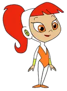 The clones look identical to Betty in every way, shape, and form apart from their eye colors and color-coded mock-ups of the Galactic Guardian uniform. Red for Optica, Orange for Destructa and Blue for Roxanne.